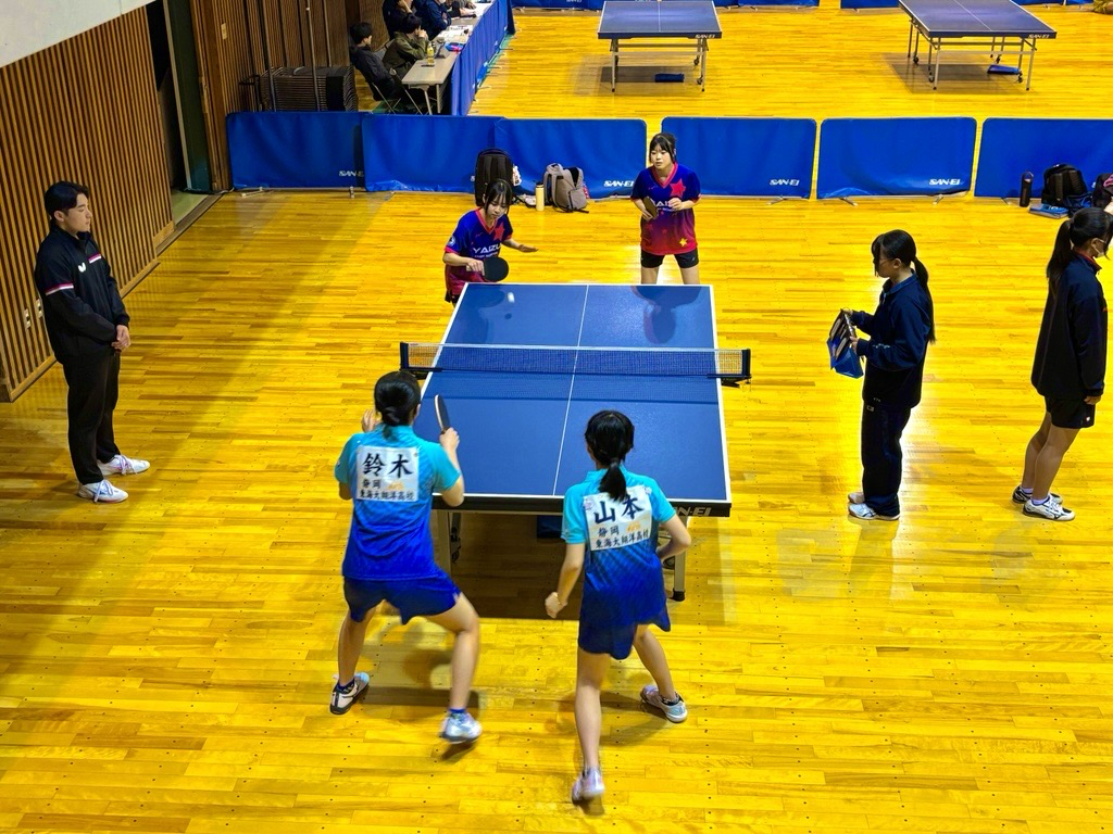 卓球部は男女ともに入部可能な部活です。「礼儀・報連相・向上心」を卓球部全体の部訓、「礼儀正しく練習する、誰からも応援されるようになる、全員1勝する」を目標とし、練習内容は基礎練習、サーブ練習、多球練習などをメインに取り組んでいます。練習メニューや練習日程は部員が決め、主体的に練習に取り組むことで卓球の競技力向上に努めています。