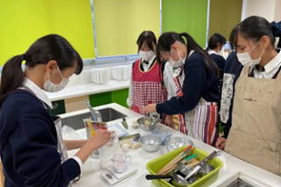 家庭部は、毎週木曜日に活動しています。活動内容はお菓子作り、レシピコンテストの参加、手芸品の製作などを行っています。作ったお菓子や手芸品は、地域のお祭りや文化祭で販売したり、レシピコンテストでは地域の食材を利用したレシピの考案を行ったりします。また、校内の他の部活動や地域の企業とコラボレーション企画をするなど、焼津市の活性化に努めています。
